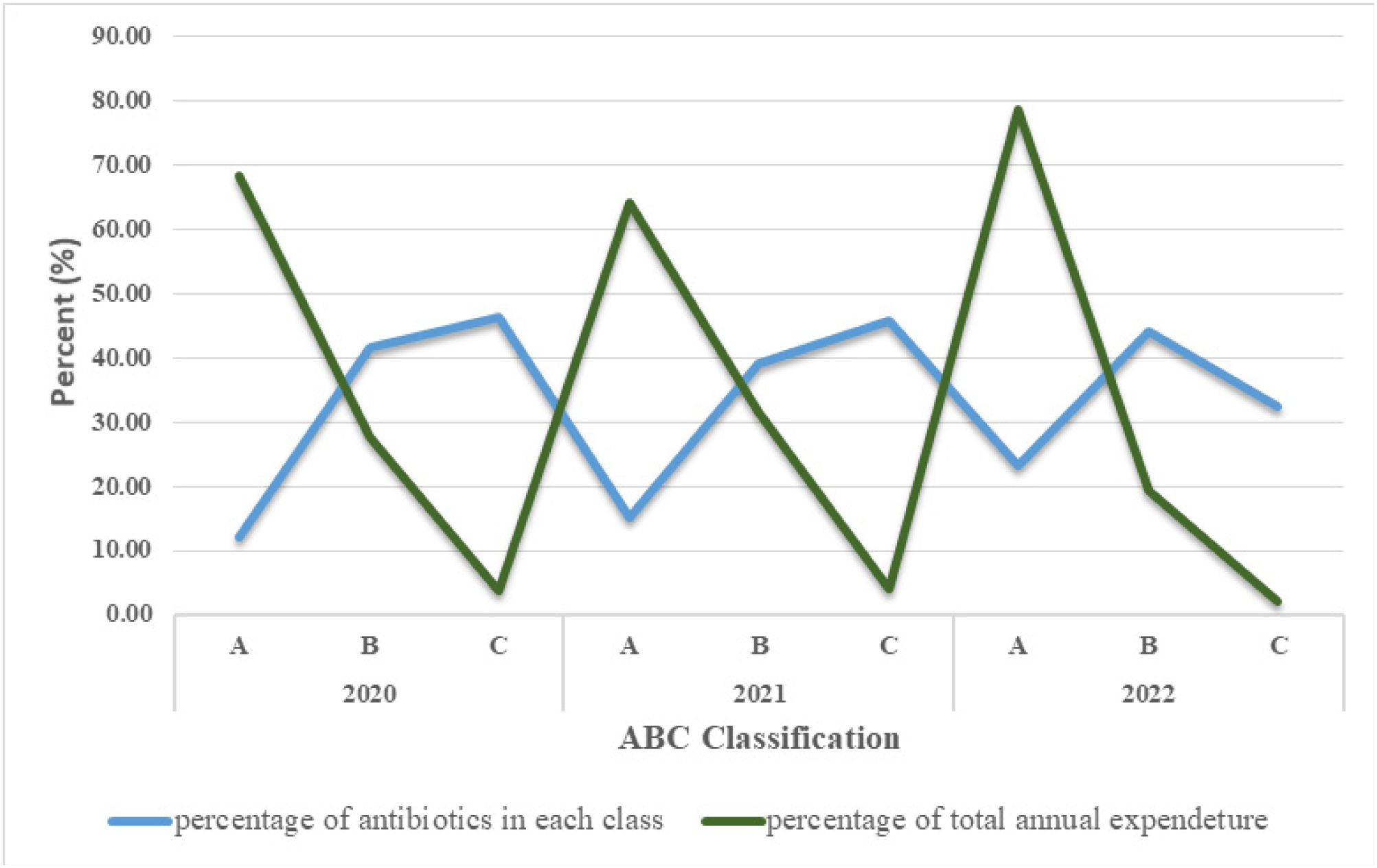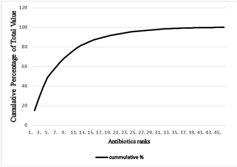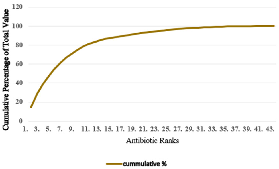 Methodology: A retrospective descriptive study was employed to analyse quantities of antibiotics procured for three years (from 2020 to 2022). Antibiotic total purchasing costs were analysed using the ABC analysis at Benjamin Mkapa Hospital (BMH).