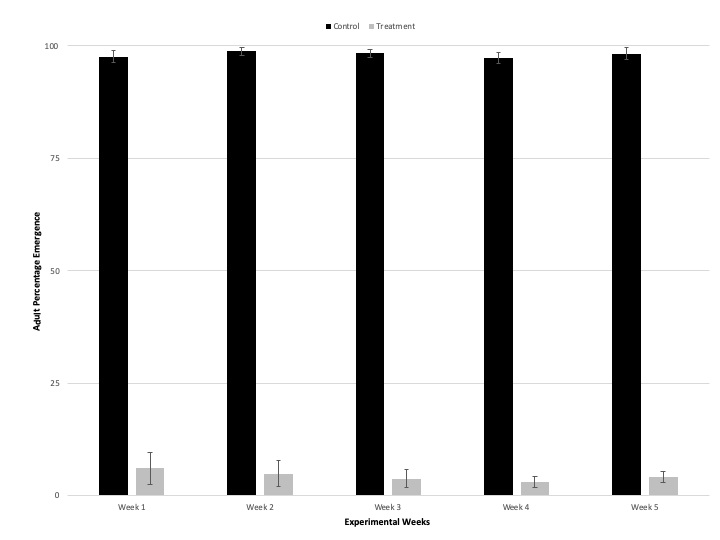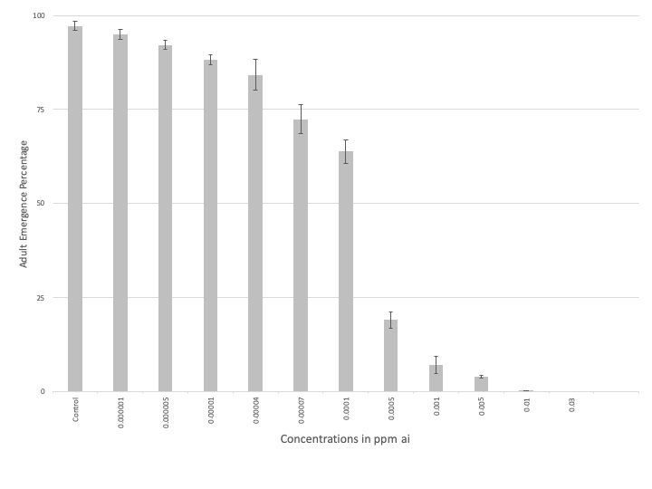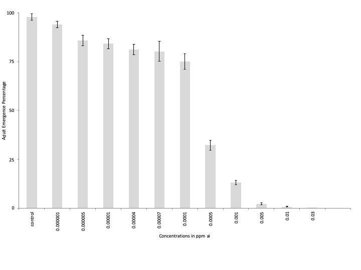 dose-dependent, with the lowest adult emergence being recorded in