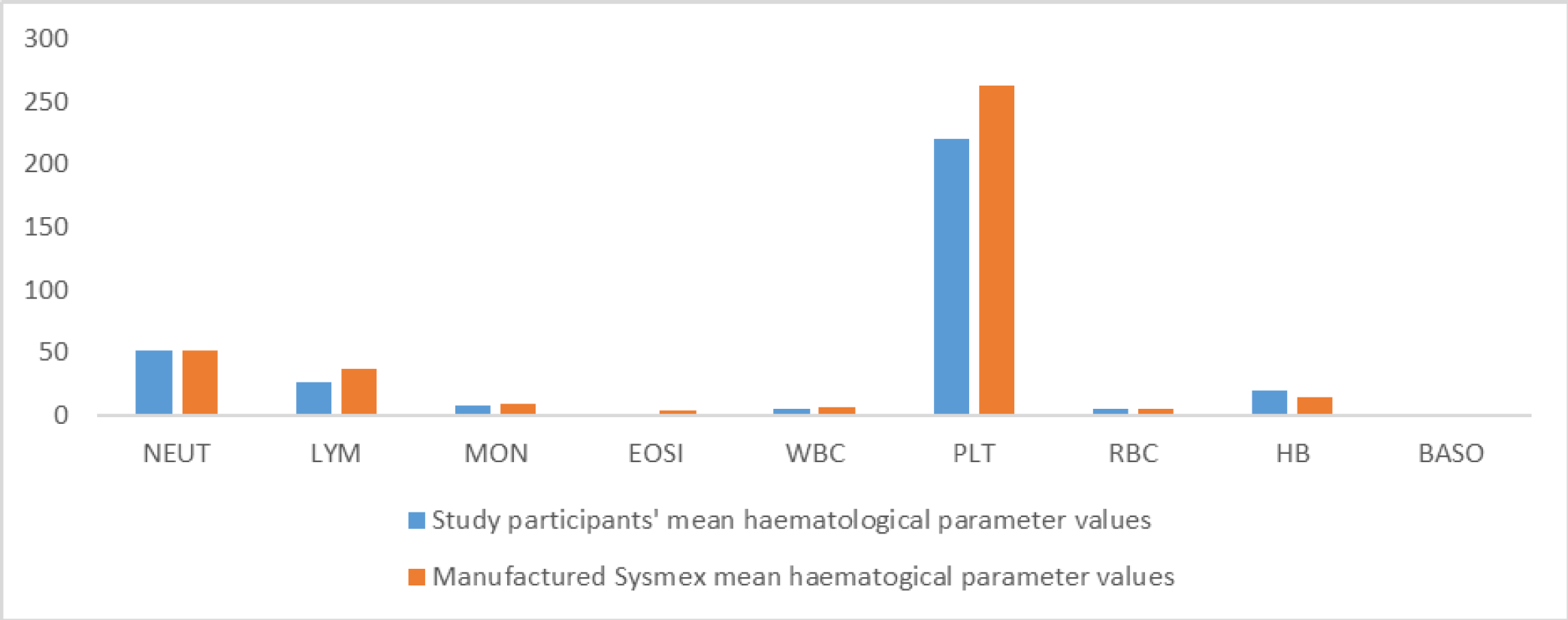 Methodology: The cross sectional study was carried out in Northern Province at Ruhengeri referral hospital from July 2018 to September 2018. Participants were 252 healthy individuals aged less than one year to 68 years. From each participant, 4mL of blood samples were collected using K3 EDTA containers, and then analysed by Sysmex XS-500i automated haematology analyser.