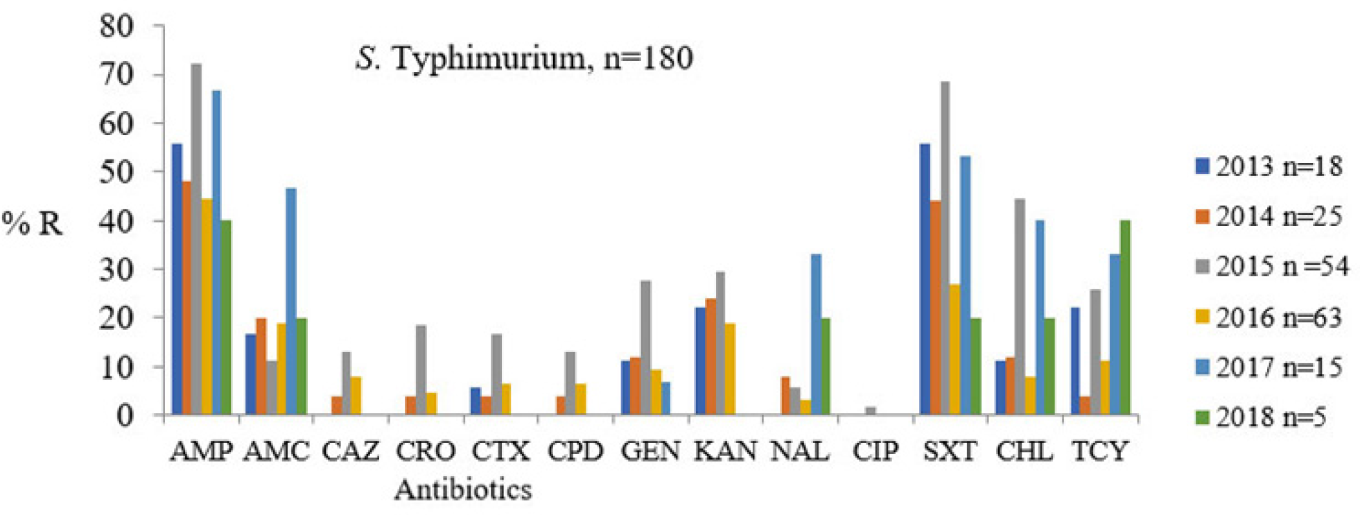 Conclusion: The high prevalence of MDR iNTS isolates and emerging resistance to third-generation cephalosporins is of great concern, as they are the recommended drugs for the management of iNTS in our settings. Sickle cell disease, malaria, and HIV were all not major factors associated with iNTS disease among children in Mukuru and Kibera informal settlements.