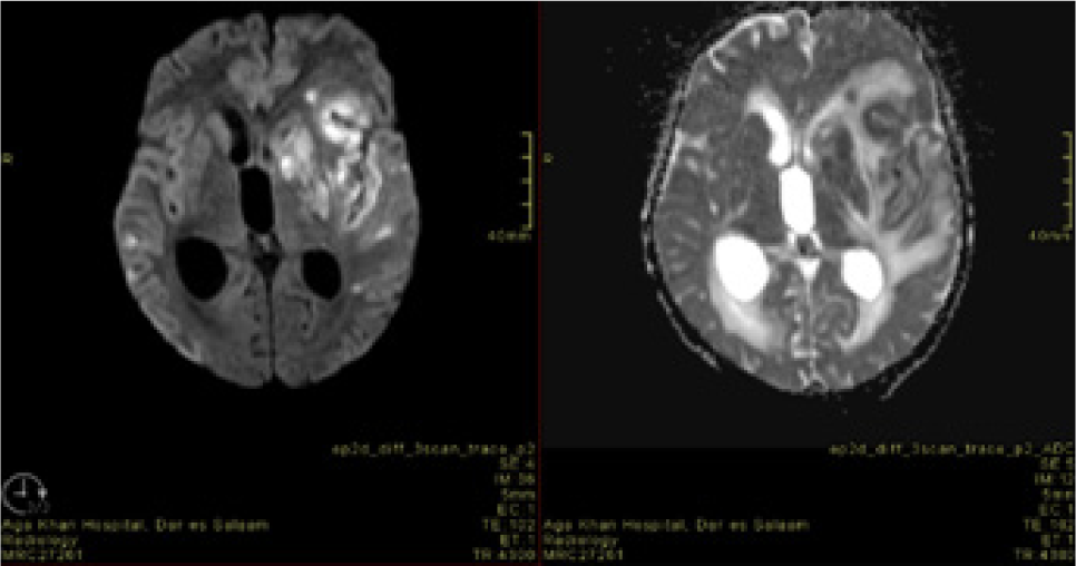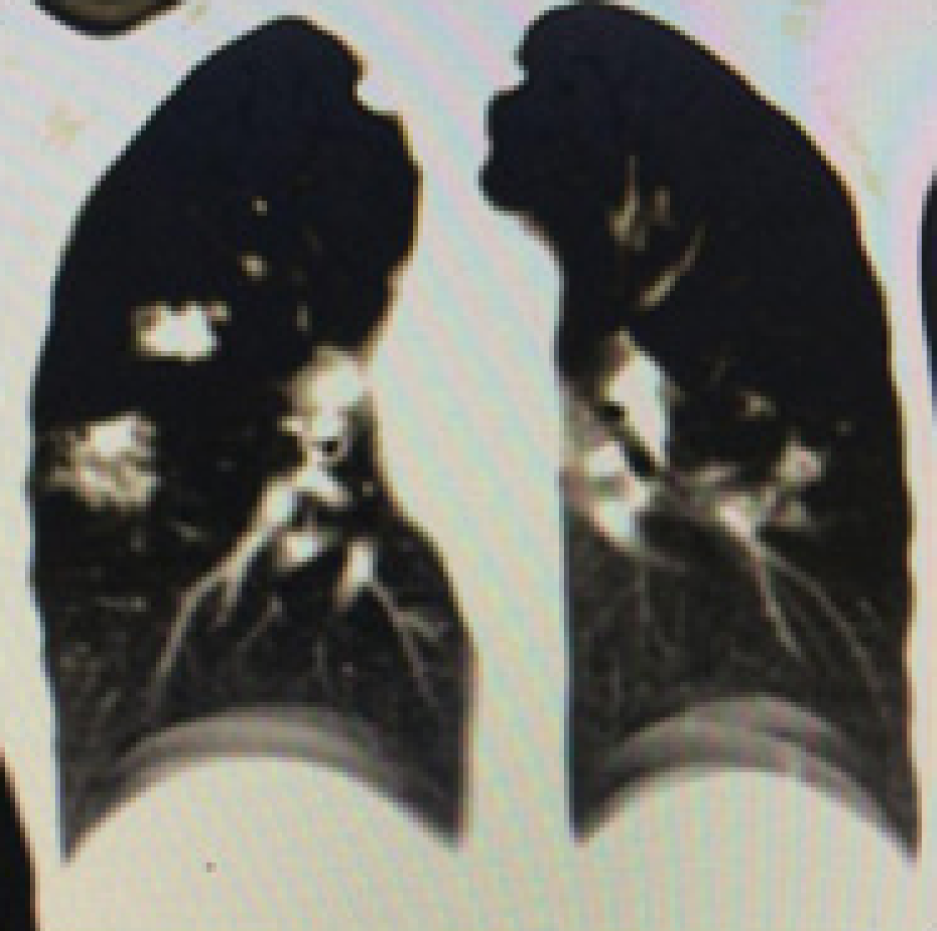 Case report: A previously healthy 14-year-old girl living in Dar es Salam, Tanzania presented with one month history of weight loss associated with weakness, loss of appetite, apathy; without respiratory symptoms. Anti-TB therapy was started, based on radiological findings of the chest which showed multiple patchy centrilobular nodules with linear branching pattern bilaterally, mediastinum lymph node enlargement with punctate calcification. She then became aphasic and developed right-sided hemiparesis. Brain imaging showed infarction, hydrocephalus and meningeal enhancement. Diagnosis of tuberculous meningitis (TBM) with left sided ischaemic stroke was made and dexamethasone was added to her regimen. Treatment and rehabilitation was continued for 12 months with minimal improvement.
